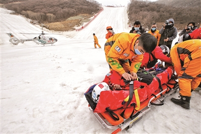 准备多一点,安全增一分。以保障运动员生命健康安全为底线,演练中,各部门分工明确、紧密衔接、配合默契,进一步积累了雪地医疗救援经验,提升了各部门协同配合开展空地一体化应急救援的能力。通过直升机救援和转运救援等方式,各个赛区的救援工作均达到国际奥委会的规定,医护人员在4分钟内可以到达受伤运动员身旁进行救治。