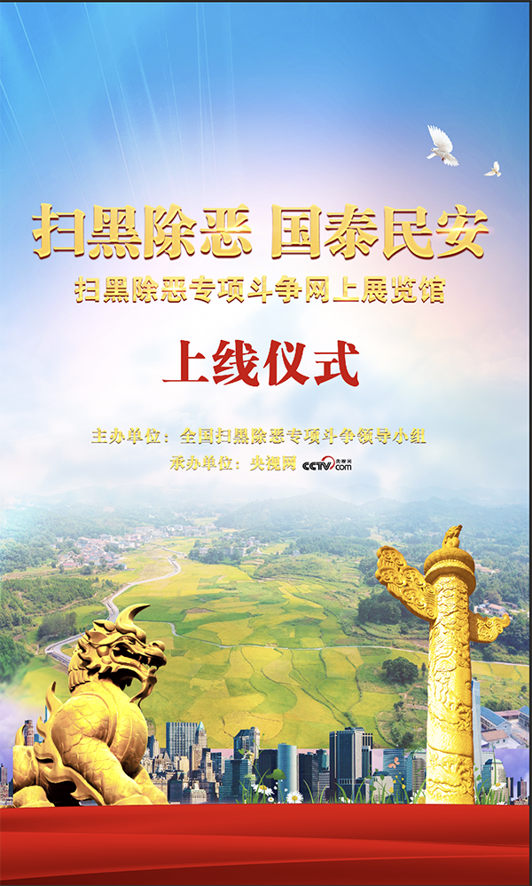 “扫黑除恶国泰民安——扫黑除恶专项斗争网上展览馆”上线仪式将于3月23日17时在北京举行,央视网、中国长安网、法制网将全程在线直播,欢迎届时收看。
