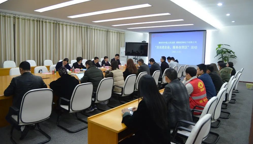 湖南法院网讯 为切实推动《民法典》的实施,进一步了解自贸区商事主体的司法服务需求,为自贸区营造良好的法治营商环境,结合“我为群众办实事”活动,3月22日,郴州中院民三庭到中国(湖南)自由贸易试验区郴州片区开展“送法进企业、服务自贸区”活动。郴州中院原党组副书记、副院长曹文杰参加活动。