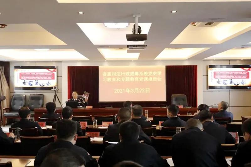 3月22日,省戒毒管理局组织召开了党史学习教育暨“牢记殷切嘱托、忠诚干净担当、喜迎建党百年”专题教育党课报告会。省司法厅党委委员、省戒毒管理局党委书记、局长张卫国紧紧围绕“学党史、悟思想,中国共产党为什么能”主题,为省直司法行政戒毒系统党员民警职工讲授了一堂史料详实、内容丰富、精彩生动的党课。