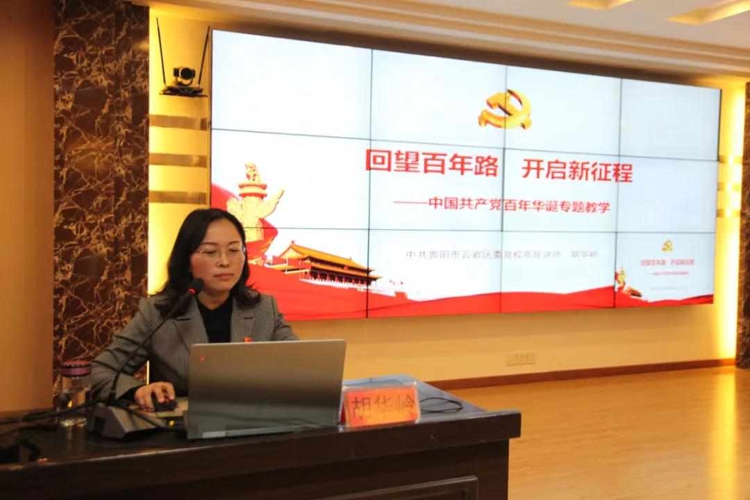 专题讲座邀请了中共贵阳市云岩区委党校高级讲师胡华岭进行授课,开展了以《回望百年路 开启新征程》为主题的学习党史专题讲座。在家所党委班子成员及各科室、大队民警参加了此次专题讲座。