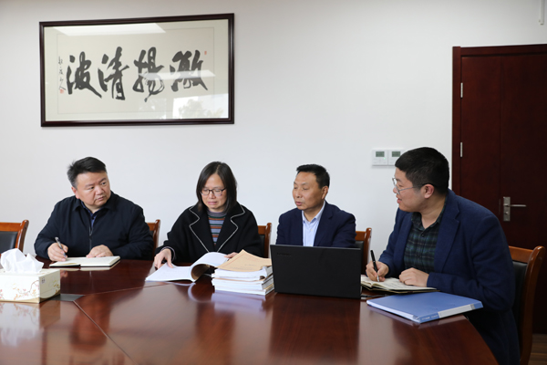 图为上海市奉贤区纪委监委第四审查调查室工作人员正在研究案情。 钟朔 摄
