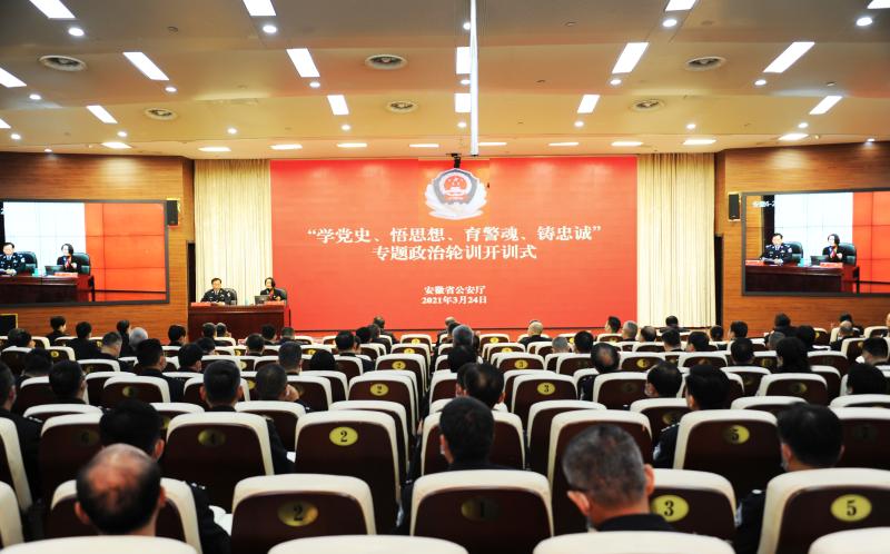 根据中央及省委、公安部党委要求,省公安厅对党史学习教育进行了动员部署,决定从3月下旬到6月底,每两周一期,共计7期,以“安徽公安大讲堂”为载体,以带“长”党员民警为重点、延伸覆盖到全体公安民警辅警,在全省公安机关组织开展“学党史、悟思想、育警魂、铸忠诚”视频政治轮训,教育引导全警铸就信仰之基、砥砺奋进之志、担起为民之责、增强斗争之力、传承红色之魂、把牢忠诚之本,更加扎实有力做好维护国家政治安全和社会大局稳定各项工作。