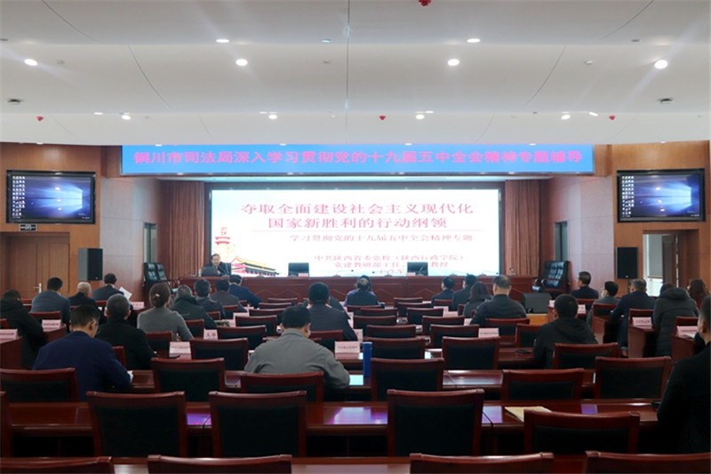 3月19日,铜川市司法行政队伍教育整顿办公室邀请陕西省委党校王彦军教授以“夺取建设社会主义现代化国家新胜利的行动纲领”为题,对十九届五中全会精神进行系统解读。王彦军教授重点从党的十九届五中全会的重要意义、《建议》的关键词和新论断、“十三五”的成就、2035年远景目标和“十四五”时期主要目标任务等方面系统阐释了党的十九届五中全会丰富内涵。本次专题辅导讲座政治站位高、理论思考深、内涵丰富、论述精辟,既有政策理论高度,又紧密联系实际,对全面理解、准确把握党的十九届五中全会的新思想、新观点、新要求,全体干警系统学习党的十九届五中全会精神具有重要意义,对下一步司法行政工作在新发展格局下推进高质量跨越式发展具有重要的指导意义。