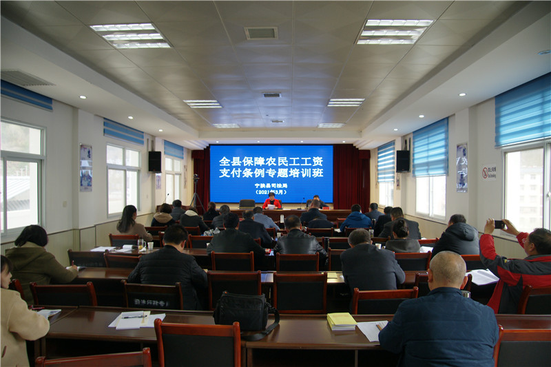 为有效维护农民工合法权益,增强农民工依法维权意识,提升农民工欠薪维权法律援助案件办案质量,安康市宁陕县司法局组织局机关干部、11个基层司法所,陕西秦林律师事务所律师,宁陕县148法律服务所法律工作者、县矛盾调解中心工作人员举办了农民工欠薪法律援助案件办理业务培训会。