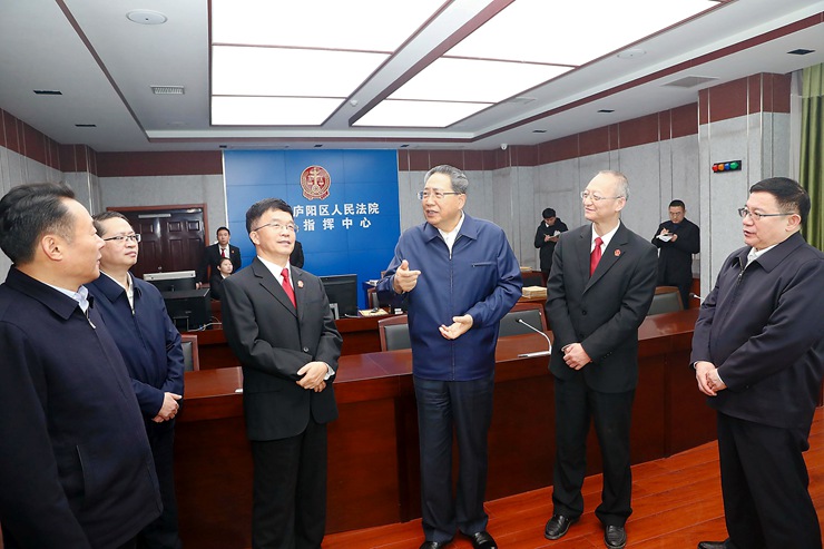 3月24日上午,省委书记、省政法队伍教育整顿领导小组组长李锦斌深入合肥市庐阳区法院,调研督导政法队伍教育整顿工作。 记者 徐国康 摄