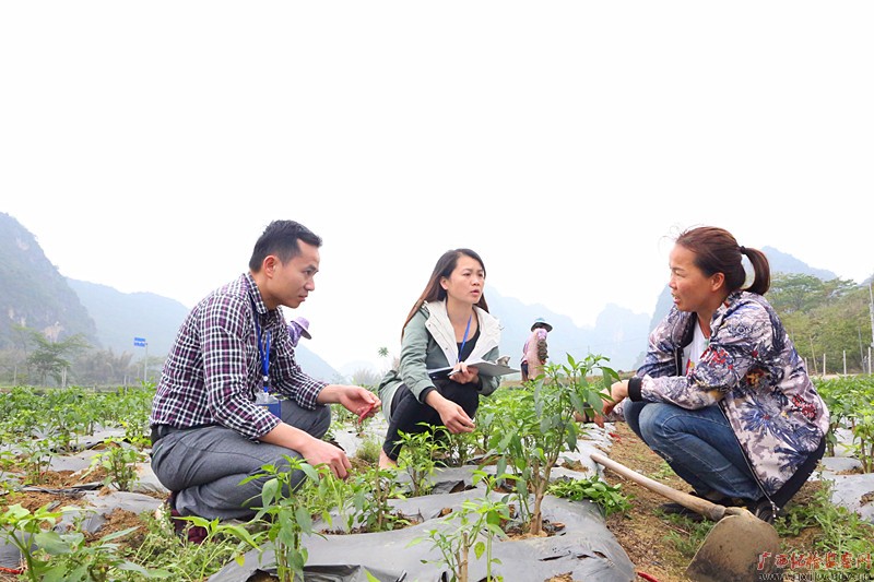天等县纪检监察干部在宝岛美人椒种植基地对工作落实情况进行监督。(天等县纪委监委 农世繁 黄丽兰)