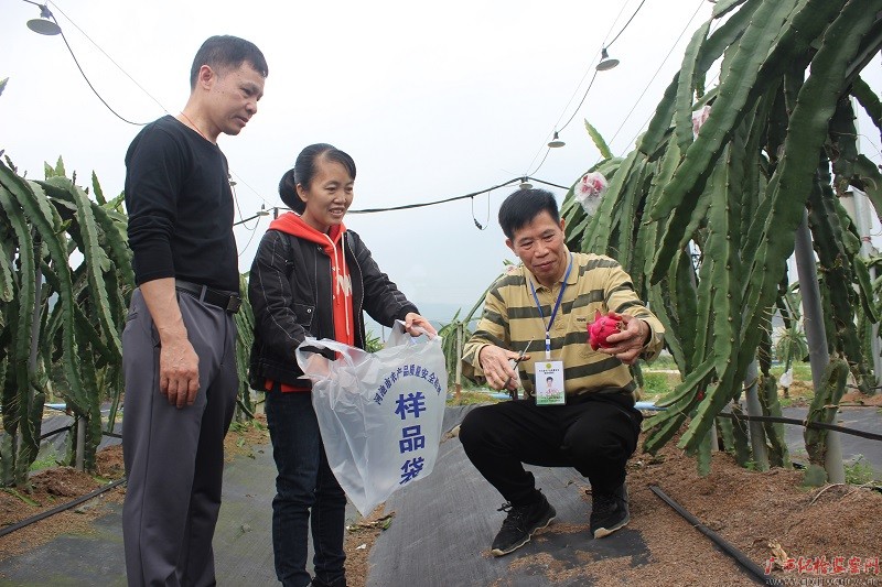 巴马瑶族自治县纪委监委派驻县农业农村局纪检监察组与县农业农村局农产品质量安全抽样检测工作人员深入县燕洞镇火龙果种植基地,对水果样品的检验与检测进行监督,确保群众果篮子”安全。(巴马县纪委监委黄肖桦)