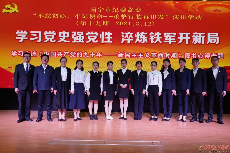南宁市纪委监委举办第十九期不忘初心、牢记使命——重整行装再出发”演讲活动,参赛选手围绕《中国共产党的九十年》分享读书心得。