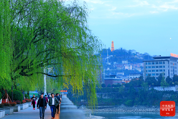 湖北省恩施市城清江两岸柳芽吐绿,春意盎然,景色宜人,吸引众多市民和游客前来踏春。(湖北省恩施州纪委监委供 谭华 摄)
