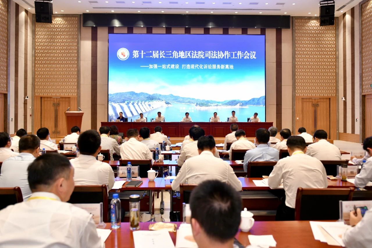 安徽法院网讯9月24日,第十二届长三角地区法院司法协作工作会议在安徽金寨干部学院召开。最高人民法院党组成员、副院长高憬宏出席会议并讲话;安徽省政协副主席、省委政法委书记姚玉舟致辞;上海市高级人民法院院长刘晓云、浙江省高级人民法院院长李占国、安徽省高级人民法院院长董开军、江苏省高级人民法院副院长茅仲华分别围绕推进长三角地区法院一站式多元解纷和诉讼服务体系建设作主题发言。