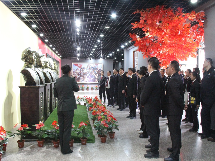 在塔卧革命烈士陵园纪念碑前,干警代表为革命烈士敬献花篮,脱帽三鞠躬,并重温入党誓词。大家瞻仰了革命烈士英雄纪念碑,参观了省军区、省委、省革命委员会等旧址。在革命烈士纪念馆,认真聆听讲解员介绍创建湘鄂川黔革命根据地,开展土地革命、发动群众扩红等革命历史,特别是听到在扩红革命中,老母亲王翠花把子孙四人先后送去当红军,最后全部英勇牺牲的故事时,干警们深受触动、热泪盈眶,深刻感受到革命烈士英勇无畏、无私奉献精神和老一辈无产阶级革命家艰苦的革命历程和伟大的革命精神。