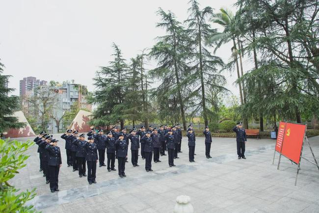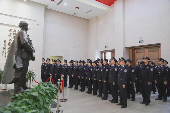 在邱少云烈士纪念碑前,全体党员民警、辅警面对党旗举起右拳,重温入党誓词。一句句铿锵誓言,激荡着共产党人的崇高理想,表达着人民警察对党的坚定信仰和绝对忠诚。