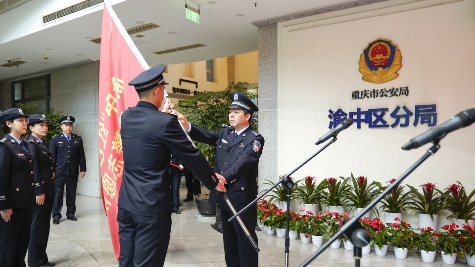 授旗现场,渝中区副区长、区公安分局党委书记、局长鲁荣锋为志愿队授旗。他强调,发挥好“红色三岩”青警志愿队作用,青年民警要感悟红岩精神,着力在强化理论武装上下功夫;要践行初心使命,着力在和谐警民关系上下功夫;要服务中心大局,着力在促进公安工作上下功夫。