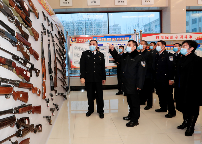 李毅同志先后深入佳木斯市公安局建国十周年纪念塔警务室、向阳分局松林派出所,东风区禁毒宣传教育基地,前进区永安街道办事处,佳木斯市第一小学等地,详细了解警务室警力配备、勤务安排、巡控机制落实以及社区警务工作等情况,仔细询问东风区禁毒重点整治、禁毒宣传教育进校园及警校共建相关工作情况,听取网格层级管理机制建设情况介绍,并深入东北抗联雕塑馆参观调研。在佳木斯市公安局,李毅同志认真听取推进首季攻势、教育整顿和扫黑除恶、打击整治枪爆违法犯罪等工作情况汇报。