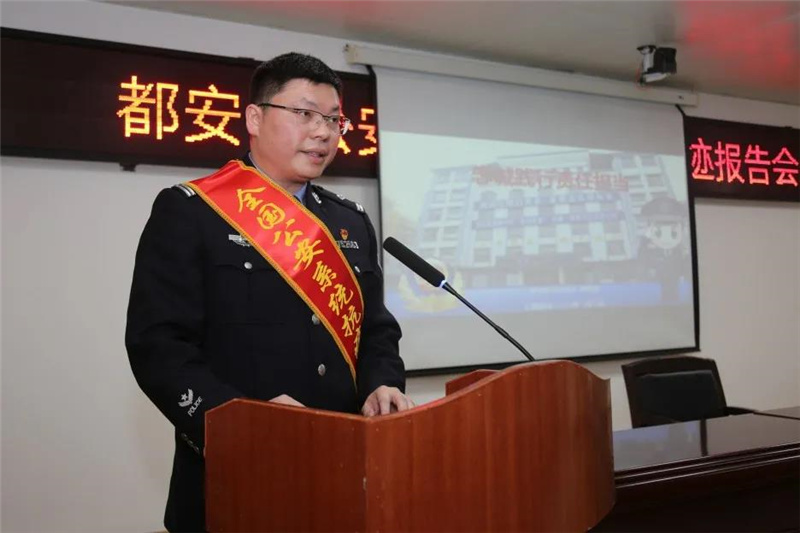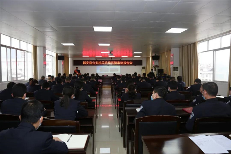 3月19日,都安县公安局举行公安机关功模民警事迹报告会。