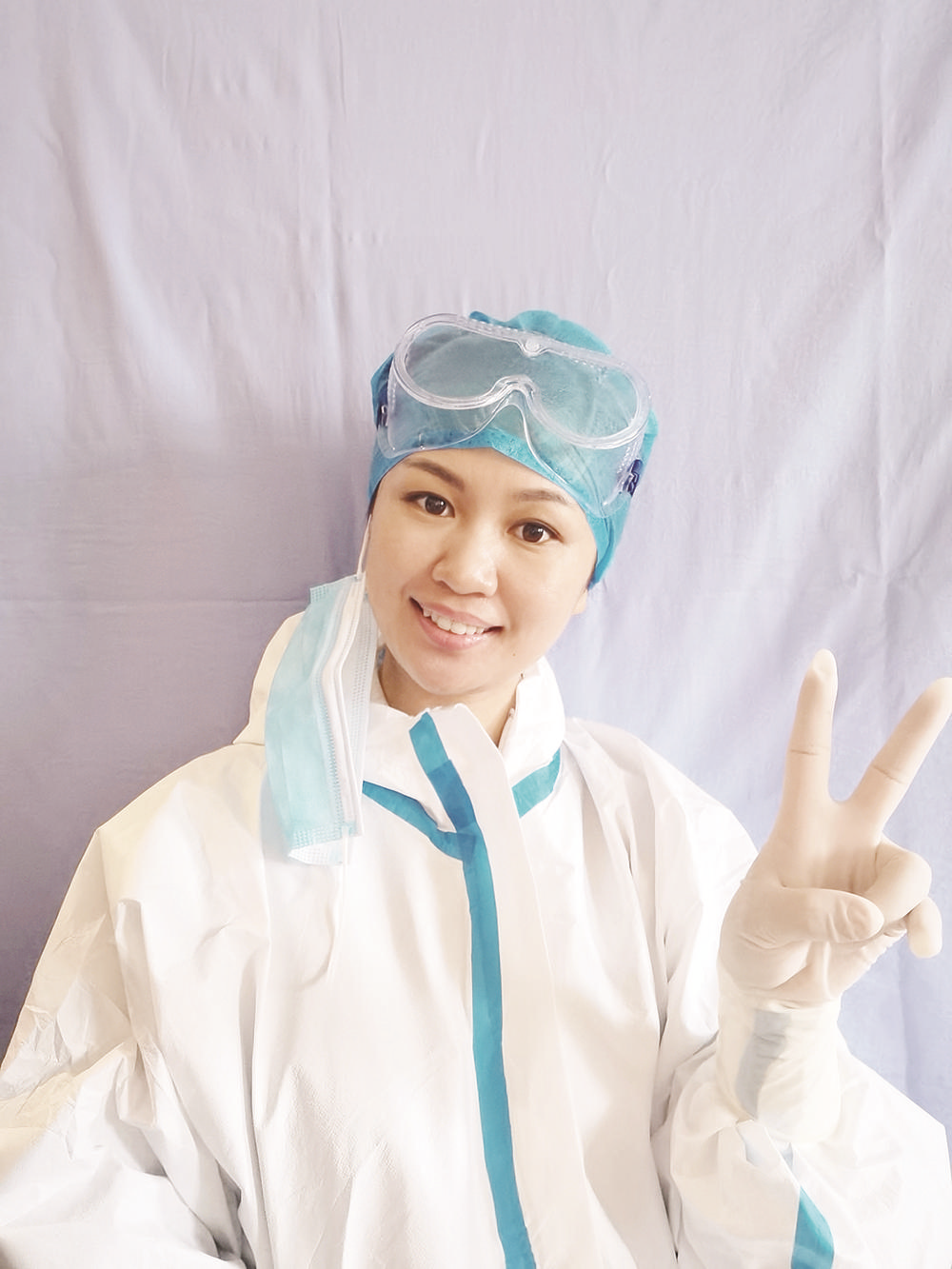 每当值班时,她穿上厚厚的防护服,从楼上到楼下,再从楼下到楼上,每15分钟一巡班,经常一个班下来满身是汗,衣服湿漉漉的。一次,由于天气温度高,长时间穿着防护服的她,逐渐感觉喘不过气,意识变得模糊起来。队友们都在各自的岗位上辛勤忙碌着,没有人注意到林琳的不适。她用牙齿咬着舌尖,用疼痛提醒自己:“你不能倒下,你一定要挺住。”凭借顽强的毅力,林琳撑了下去,等到换班回到休息场所,那一瞬间,她觉得自己差点虚脱了。