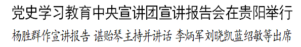 3月25日,根据中央统一安排,党史学习教育中央宣讲团宣讲报告会在贵阳举行。中央宣讲团成员、原中央文献研究室常务副主任杨胜群作宣讲报告。省委书记、省人大常委会主任谌贻琴主持并讲话。