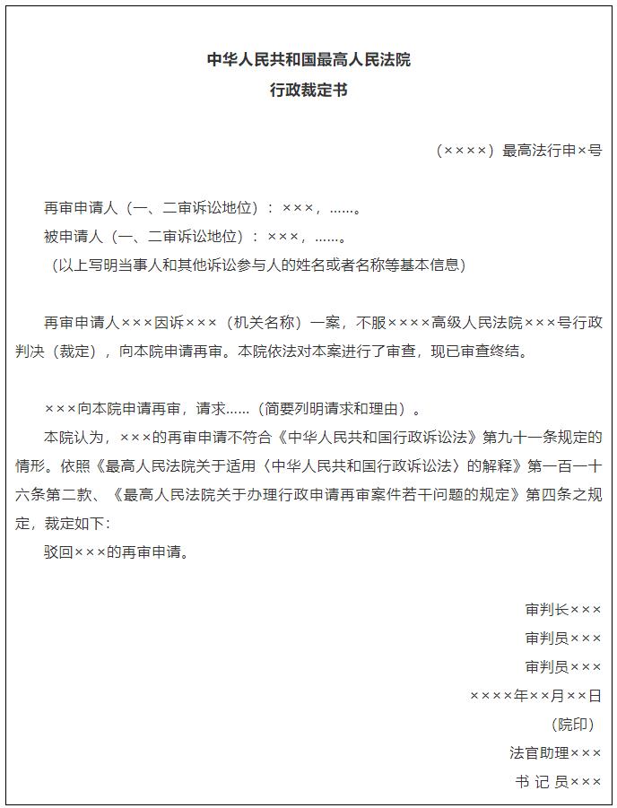 3.中华人民共和国最高人民法院行政裁定书(最高人民法院迳行驳回再审申请用)