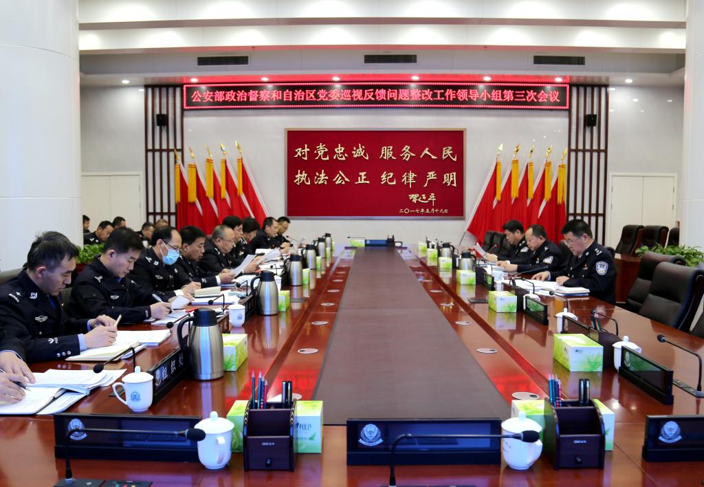 3月26日,自治区公安厅党委副书记、常务副厅长、厅整改工作领导小组常务副组长徐耀主持召开公安厅党委巡视和政治督察反馈问题整改工作领导小组第三次会议,听取各部门整改工作进展情况,研究进一步推进问题整改工作。他强调,要进一步压紧压实整改责任、抓紧抓实整改措施、强化统筹一体推进,强力推动整改工作落到实处。