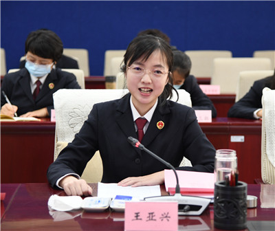 全国模范检察官、石家庄新乐市检察院第一检察部副主任陈莉娜进行座谈交流。