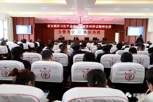 3月24日,贵州省安顺强制隔离戒毒所(以下简称省安顺所)举办队伍教育整顿专题辅导讲座,邀请安顺学院朱玉伟、黎进深两名教授对习近平总书记视察贵州重要讲话精神和习近平法治思想进行专题宣讲。所领导和全体民警参加讲座。