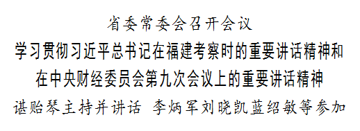 省委书记、省人大常委会主任谌贻琴主持会议并讲话。省委副书记、省长李炳军,省政协主席刘晓凯,省委副书记蓝绍敏,省委常委,省人大常委会、省政府有关负责同志,省法院院长、省检察院检察长参加。