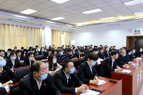 董亚静围绕“全面依法治国的重要意义”“十八大以来全面依法治国建设新成就””全面依法治国十一个方面的要求”等三个方面,系统阐述了习近平法治思想的核心要义,对“十一个坚持”进行了解读。全院干警进一步加深了对习近平法治思想的理解,强化了政治引领、理论武装、素能提升。