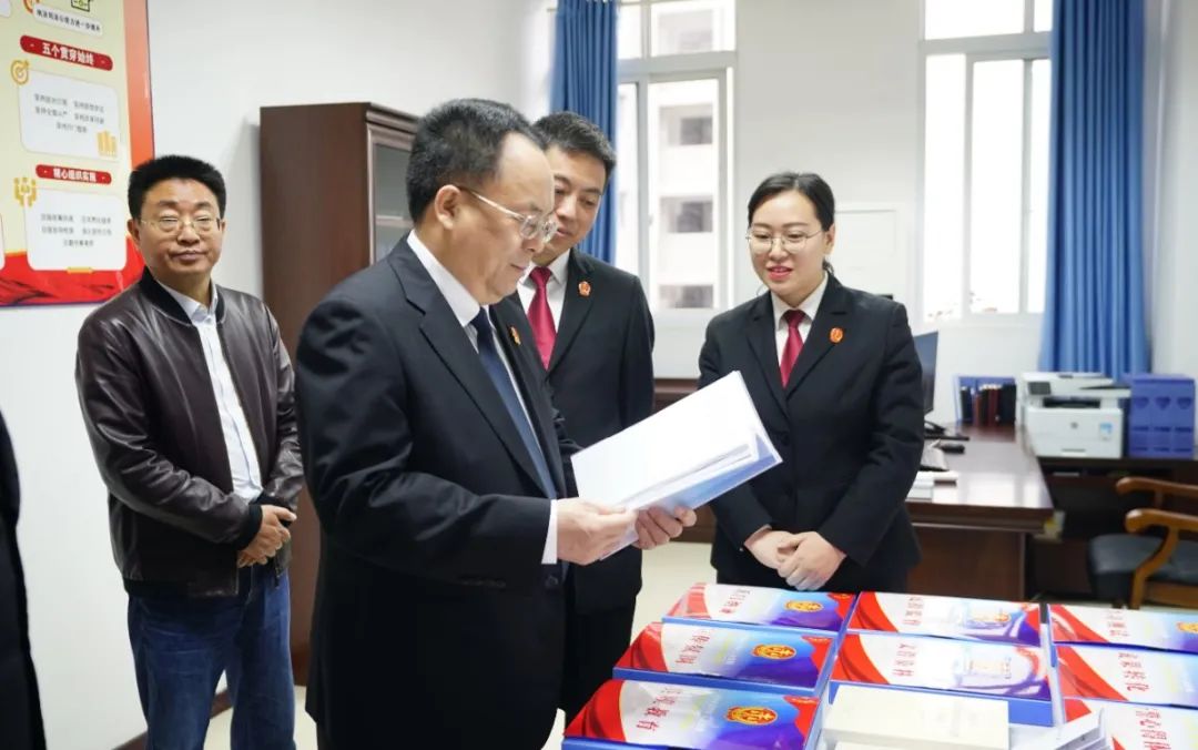 在该院队伍教育整顿办公室,王树江院长认真查阅了队伍教育整顿等相关资料,详细了解了教育整顿工作开展情况并对干警手写学习心得体会的做法表示赞扬。