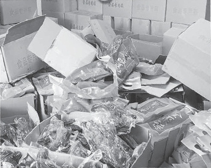 “在北京某地的一个库房,满地码放着成摞的纸箱,箱子里面存放着标有全聚德字样的手提袋、礼盒、专用酱袋、荷叶饼袋,经查,这些仿冒的外包装销往北京市丰台区、大兴区等地的多个黑作坊,数量高达20余万件。”丰台区检察院第二检察部主任刘亮回忆起办理这起假冒全聚德烤鸭案的经过,向记者坦言,该案中假烤鸭的产销已经形成了“上游提供假冒包材——中游小作坊加工制作——下游向导游销售——末端经由导游向游客出售”的全链条犯罪链。