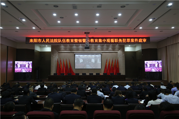为持续深化教育整顿,突出警示教育作用,3月29日晚,耒阳法院组织全院干警集中观看张某某贪污、受贿罪一案庭审视频。