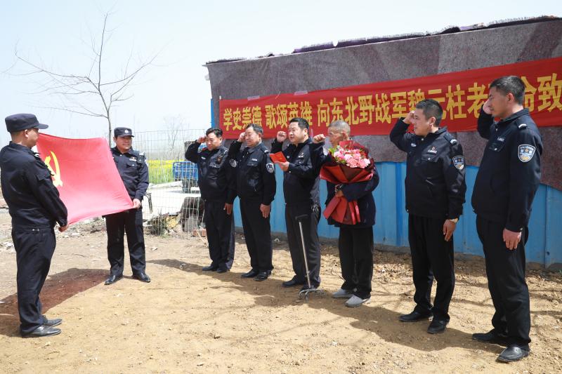 之后,郭荣权带领大家面对党旗,重温入党誓词,表示一定以魏元柱老兵为榜样,传承红色基因,重温光辉党史,不忘初心,牢记使命,砥砺前行。学习他长期扎根农村,艰苦朴素,淡泊名利,从没有向组织提要求、讲条件,他的无私奉献精神让所有人为之动容,激励着广大党员民辅警扎扎实实做好公安工作。1970年7月,魏元柱加入中国共产党。他身体残疾,自己没有向组织上提任何要求。1971年,他转业回到老家被群众选为村干部,和乡亲们同甘苦,共患难,带领全村党员群众积极贯彻落实党的农村各项方针政策,到现在一直默默无闻的付出着,从未向组织提出要求。