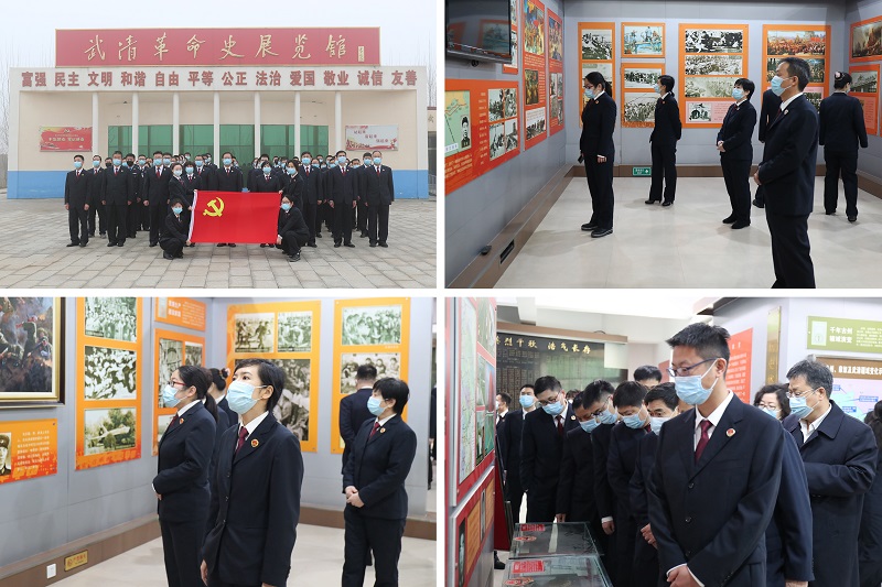 我院干警向革命烈士纪念碑敬献花篮,默哀并绕纪念碑一周,缅怀革命先烈。之后参观武清区党史展览馆,深入学习革命先辈们为了祖国的解放、人民的幸福和社会主义事业,不惜抛头颅、洒热血的大无畏革命精神,牢记初心使命,奋力为检察事业发展做出更大贡献。