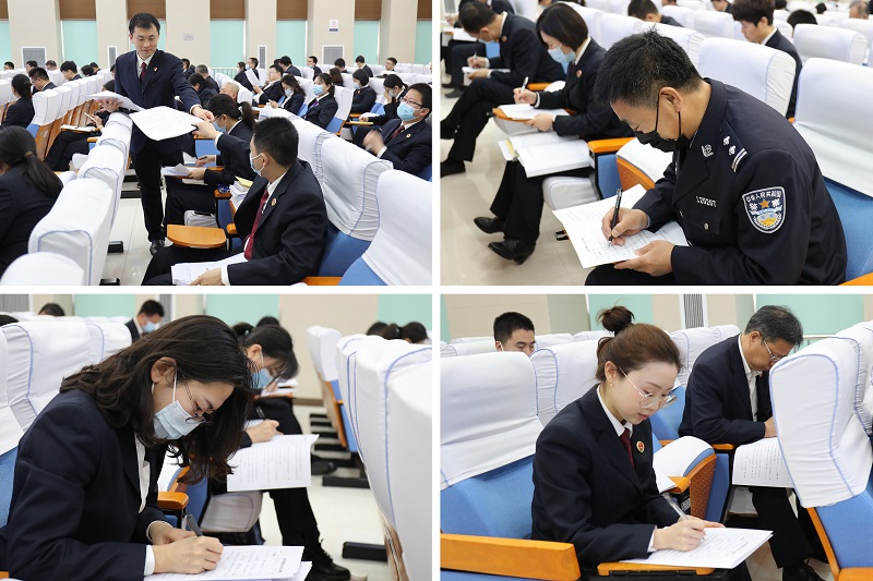 干警们认真答题,积极思考,会场考试纪律井然。