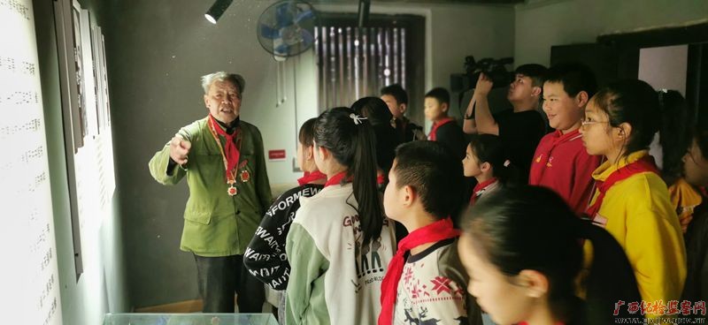 以红色基因加强少年儿童思想道德教育、帮助少年儿童扣好人生第一粒扣子”。在荔浦市杜莫镇张村红色革命博物馆内,中共修荔蒙特支地下党员张成富老人向孩子们讲述当年的地下工作故事。(荔浦市纪委监委)