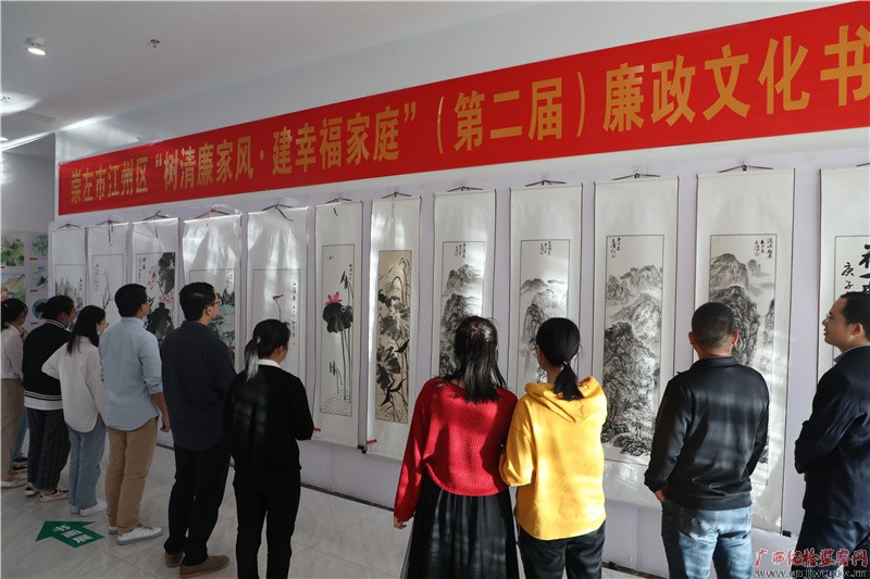 崇左市江州区开展树清廉家风·建幸福家庭”主题廉政文化作品展。图为该区干部职工正在参观家风家训作品。(崇左市江州区纪委监委蒙志新)