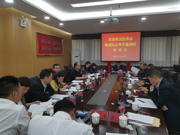 2021年3月30日,省委依法治省办在省司法厅附二楼会议室召开推进民法典实施调研座谈会,省委依法治省办专职副主任、副厅长李兵主持会议,贵阳市、遵义市、安顺市、六盘水市、黔西南州部分基层司法所长、人民调解委员会主任、人民调解员参加会议。