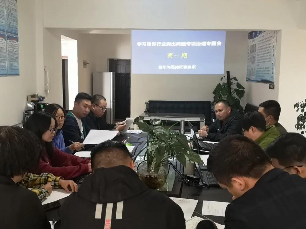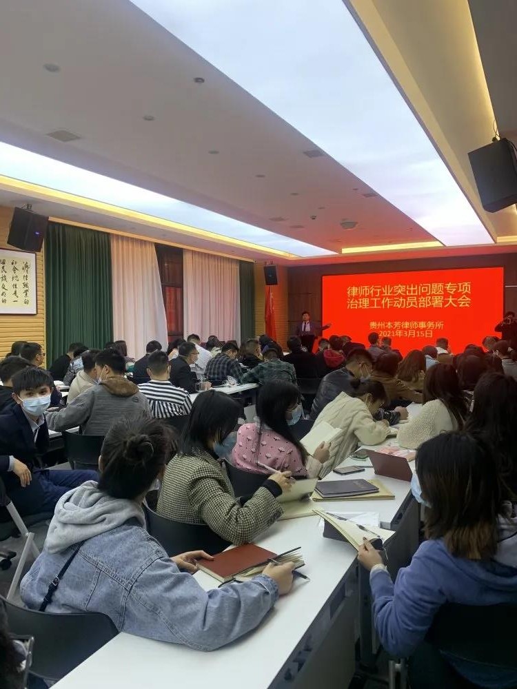 3月15日晚,贵州本芳律师事务所召开律师行业突出问题专项治理工作动员大会,律所负责人、执业律师、实习律师参加了会议。