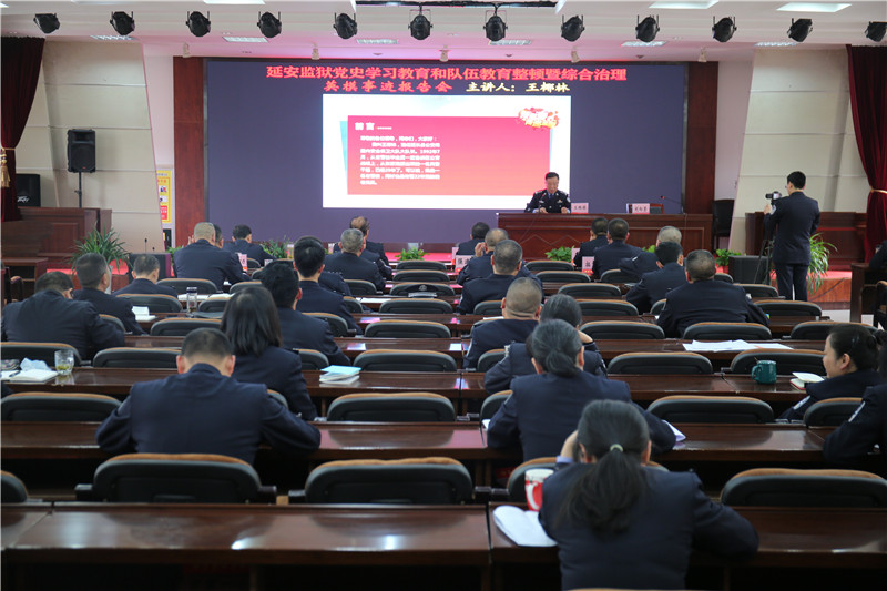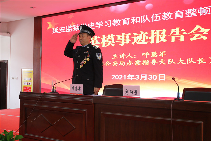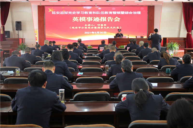 按照党史学习教育和队伍教育整顿暨综合治理工作安排,3月30日,陕西省延安监狱举办“英模事迹报告会”。来自延安市公安系统的两名优秀人民警察——王椰林、呼慧军作了事迹报告。非执勤的监企领导班子、副科级以上领导干部、机关警察职工80余人现场聆听了报告。