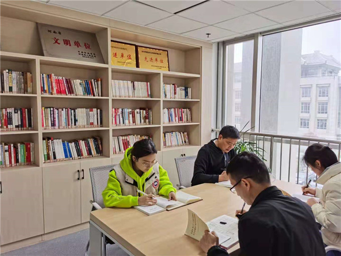 近日,周口市直纪检监察工委将闲置的办公用房进行改造建立“红色书屋”,设置党史读物、文献资料、业务储备等区域,共有图书1000多册,党员干部可以利用业余时间在“红色书屋”随时学习充电,感受红色文化经典的魅力。