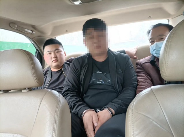 中间为抓获的犯罪嫌疑人焦某