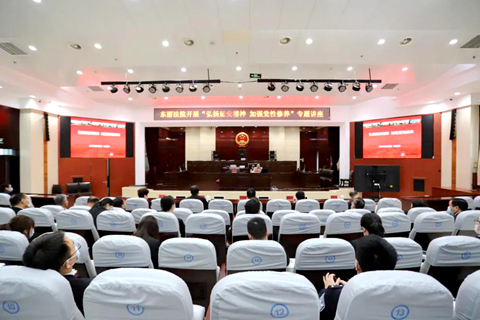 根据队伍教育整顿实施方案学习教育环节具体安排,结合开展党史学习教育实施方案的部署要求,3月25日,东丽法院邀请市委党校教授张新华讲授《弘扬延安精神,加强党性修养》专题讲座。院党组成员、副院长马权岭主持讲座,全院干警到会参加。