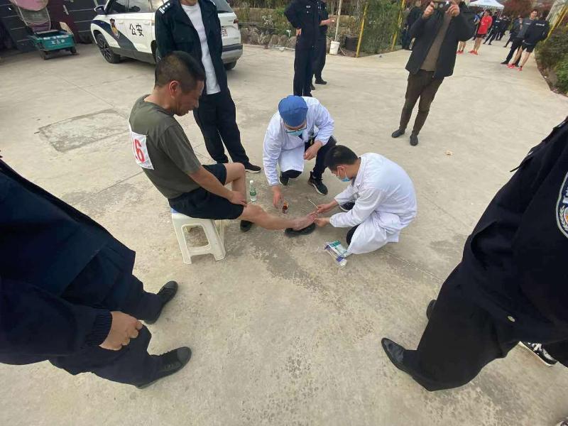 中午经过简单休整后,王金为的大腿拉伤非但没有好转,还有更加严重的趋势,吴海峰副局长、杨庆大队长多次劝他退出比武,仍然被他毅然拒绝了。就这样,他拖着一条伤腿又站在10公里徒手越野跑的赛道上。然而在赛程过半,距终点4000米处,王金为的伤势更加明显,豆大的汗珠不停往下砸,连现场的医生都已经认定他难以支撑比赛,坚决劝他放弃。可王金为还是摆手拒绝,他强忍伤痛,坚持着在赛道上奔跑,终于,以惊人的毅力冲过了终点。此时,受伤的身体再也支撑不住,他一下子就栽倒在了地上,被大家抬着去医院就诊治疗。