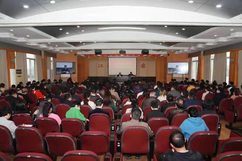 为帮助全体检察人员深入学习和理解习近平法治思想,4月1日,省检察院举办习近平法治思想专题辅导讲座。省检察院党组成员、政治部主任华智峰主持。讲座以电视电话会议形式进行,市县两级检察院设立分会场,全省4千余名检察人员收听收看。