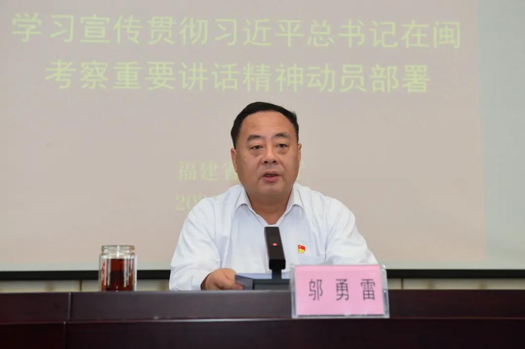 4月2日上午,福建省司法厅召开全系统认真学习宣传贯彻习近平总书记在福建考察时重要讲话精神动员会,厅党委书记、厅长邬勇雷作动员讲话。