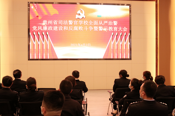 4月2日上午,省司法警官学校召开了从严治警、党风廉政建设和反腐败斗争暨警示教育大会。会上,全校党员、干警观看了《醉、坠、罪》和《忏悔》廉政教育专题片;党委副书记、政委何徕传达了《关于四起违反政治纪律典型案例的通报》;校党委书记、校长丁健作了题为《深入贯彻落实习近平总书记重要讲话精神 以全面从严治党新成效推进学校各项工作高质量发展》的讲话。