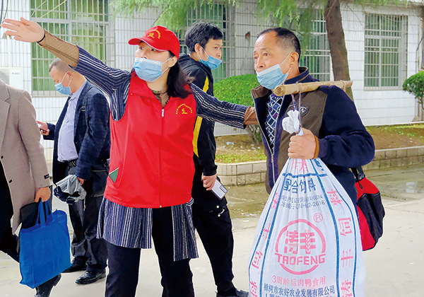 江西新干县火车站,志愿者正在为旅客提供上车服务(图片来源:视觉中国)
