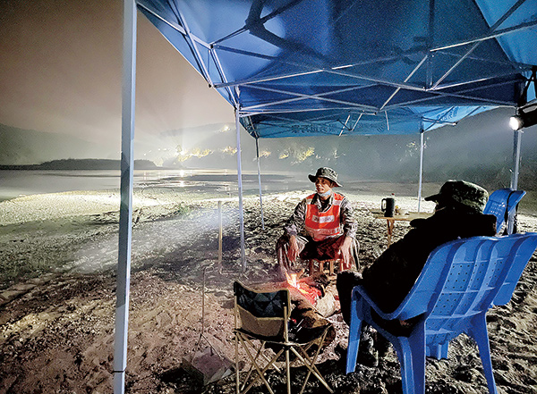 云南瑞丽,封控人员深夜值守在中缅界河瑞丽江的河滩上(图片来源:视觉中国)