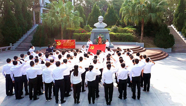 图为福建省东山县纪检监察干部在谷文昌塑像前重温入党誓词。张艺生 摄