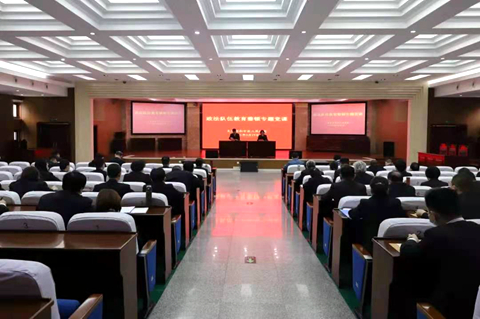 张景良围绕两个“实”字和两个“严”字,深入讲解了开展教育整顿的现实紧迫性和极端重要性,指出政法队伍教育整顿是新时代政法战线一场激浊扬清式的“延安整风”,目的就是要先解决政法干警思想根子的问题。开展政法队伍教育整顿,首要任务是加强思想作风建设,关键是教育管理好党员干部,把全面从严治党落实到每一名党员干部身上,坚决从思想上“祛毒”,确保干警人人受教育。